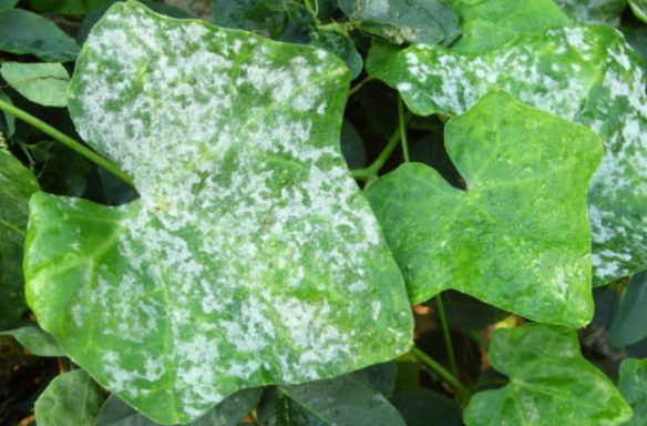 Echte meeldauw is een schimmelziekte die vaak voorkomt bij planten, zoals rozen, druiven, courgettes en sierplanten. Je herkent het aan een witte, poederige aanslag op de bovenkant van bladeren, jonge scheuten en soms ook bloemen of vruchten. De schimmel verspreidt zich snel bij warm, droog weer met veel luchtvochtigheid in de nacht.